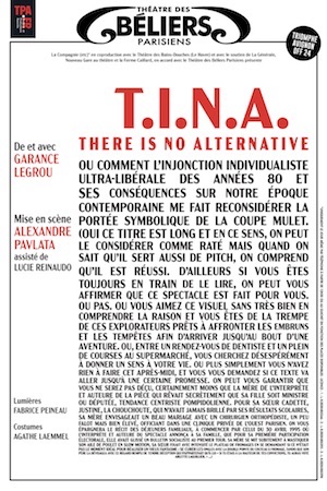 Parler du monde d'aujourd'hui en évoquant les années 80, parler de choses sérieuses à partir de détails futiles... A travers ses réflexions Garance Legrou nous pousse à changer notre regard sur les choses, à reconsidérer notre échelle de valeurs. On est vite séduit par ce ton décalé et cette écriture singulière pleine d'humour. Drôle et touchant à la fois, original dans sa construction et pertinent dans son propos, ce spectacle est à découvrir sans hésiter.