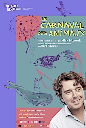 SPECTACLE MUSICAL POUR ENFANTS de et raconté par Alex Vizorek, Illustré en direct et en réalité virtuelle par Karo Pauwels, mise en scène de Gabriel Alloing, musique de Camille Saint-Säens, accompagné par L’Ensemble Est-Ouest.