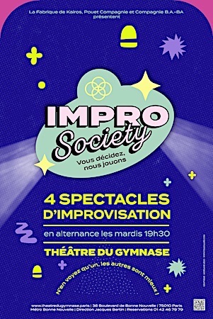 Quatre spectacles exceptionnels en alternance : rire et émotions, histoires courtes ou long format, duos, trios, musicien live, tout est improvisé donc tout peut arriver. Dans "Mêmes joueurs jouent encore", Caroline et Benjamin improvisent plusieurs histoires à partir d’un même départ donné par le public. Le duo "Gomes & Gomez" relève le défi d’inclure toutes les propositions des spectateurs dans une aventure épique improvisée ! "On va pas passer par quatre chemins" fait vivre à votre héros favori l’instant le plus crucial de votre vie. "Enkadré" détourne les œuvres d’art ! Des histoires improvisées en trois coups de pinceau qui ne vous laisseront pas de marbre.