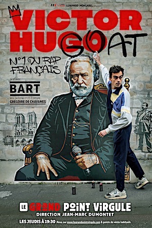 Récemment, Bart a eu une révélation : si Victor Hugo avait vécu aujourd’hui, il aurait été le meilleur des rappeurs. Le monde devait savoir. Comment ? En créant un morceau de rap pour raconter la vie de l’Homme-Siècle. Mêlant conférence humoristique, rap & galerie de personnages, BART explore la vie de Victor Hugo afin de construire, couplets après refrains, le rap final biographique. Avec le public, ils vont recréer la bataille d’Hernani, pleurer la mort de sa fille, vibrer lors de ses discours politiques et dialoguer avec le maître lui-même ! Avec quelques guest stars venues donner un coup de main : Jul, Nekfeu, PNL, Soprano…