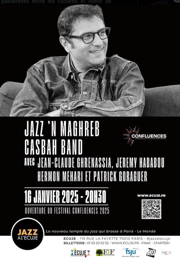 Ce concert inédit du Casbah Band dirigé par Jean-Claude Ghrenassia, revisite les grands standards de la musique d’Afrique du Nord, notamment le chaâbi, à travers le langage universel du jazz. Ces artistes ont marqué la scène musicale judéo-arabe du 20e siècle et ce projet ambitieux s’inspire de leur héritage pour le réinventer dans un dialogue entre les traditions méditerranéennes et les rythmes du jazz