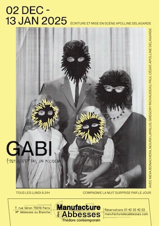 THÉÂTRE CONTEMPORAIN de et mis en scène par Apolline Delagarde, avec Noura Lapalus, Paul Cédat,Grégory Richaudeau, Neva Bonachera, Apolline Delagarde, compositions musicales: César Gandhillon et Mai Lan.
