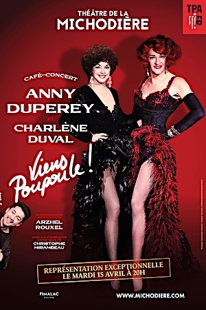 Laissez-vous séduire par des chansons audacieuses et pleines d'humour. Les Poupoules sont immortelles. En voici deux de la plus belle espèce : la Duperey et la Duval. Elles excellent et étincellent, réimaginent le caf’conc’ de la Belle Époque. Complices et délicieusement canailles, La Duperey, resplendissant oiseau rare, et La Duval, icône du music-hall, vous entraînent vers les faubourgs de 1900, escortées de leur sémillant pianiste Arzhel Rouxel, à travers une vingtaine de chansons parfois polissonnes mais toujours pleines d’humour et de sous-entendus bien audacieux pour l’époque. Les trois artistes se mettent au service de ce répertoire "que les moins de vingt ans ne peuvent pas connaître", dans un tourbillon de gaieté et de joie de vivre communicative !