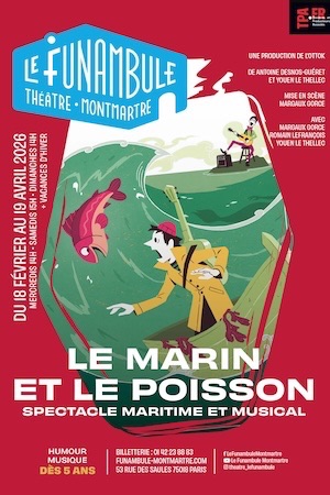 Un narrateur nous chante la rencontre entre un pauvre marin et un poisson magique qui le guidera à un trésor… Enfin c’est ce qui aurait du arriver, mais le poisson est incapable de retrouver son chemin et perd le Nord, le marin a tellement faim qu’il menace de manger le poisson plutôt que de le suivre vers un trésor et le narrateur est lui-même tellement dépassé par la situation qu’on se demande si ce n’est pas lui, le naufragé de l’histoire. Ce spectacle maritime et musical revisite avec humour le conte merveilleux et ses codes.
