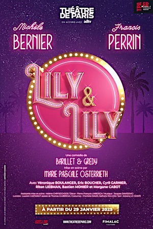 COMÉDIE de Barillet et Grédy, mise en scène par Marie-Pascale Osterrieth, décor de Pierre-François Limbosch, costumes de Charlotte David et Nathalie Paillon, avec Michèle Bernier, Francis Perrin, Véronique Boulanger, Éric Boucher, Cyril Garnier, Riton Liebman, Bastien Monier et Morgane Cabot.