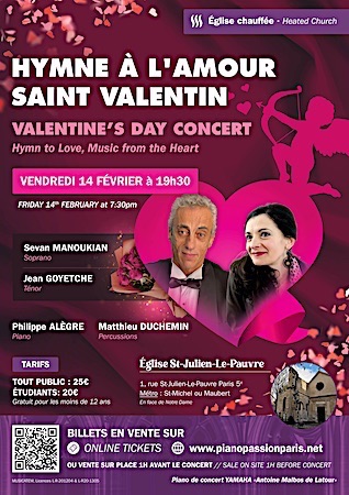 Un moment romantique pour célébrer la fête de l'amour autour des plus beaux airs et duos lyriques tels que La Traviata, Carmen, Rigoletto, My Fair Lady et les chansons populaires d'Edith Piaf.