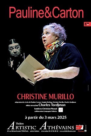 Bien sûr, il s’agit ici de la mythique actrice Pauline Carton. Quand on sait que c’est la comédienne quadri moliérisée Christine Murillo qui dit, lit et vit les textes de Carton, ses échanges avec Sacha Guitry mais aussi ceux avec son unique amant, qui plus est poète… Quand on sait que Christine chante a cappella des chansons de Carton… Quand on sait qu’il n’y a qu’une table et une boîte en carton dessus… Quand on sait qu’on parlera de sexe, d’argent, mais aussi de passion pour les moineaux nourris aux croissants, on voit poindre le nez, que dis-je le nez, le cap, la péninsule, de la fantaisie essentielle.