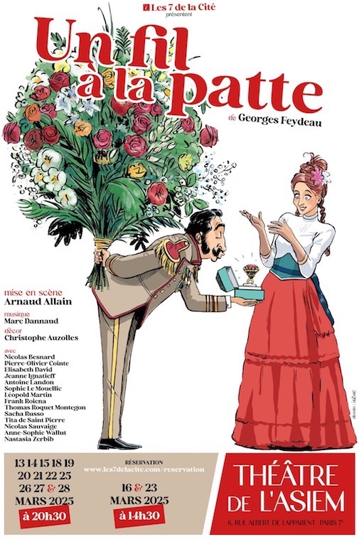 COMÉDIE de Georges Feydeau, mis en scène par d'Arnaud Allain, avec Nicolas Besnard, Pierre-Olivier Cointe, Elisabeth David, Jeanne Ignatieff, Antoine Landon, Sophie Le Mouellic, Léopold Martin, Frank Roiena, Thomas Roquet Montegon, Sacha Russo, Tita de Saint-Pierre, Nicolas Sauvaige, Anne Sophie Wallut et Natasia Zerbib.