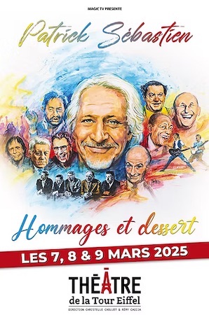 Hommages et Dessert, le nouveau spectacle de Patrick Sébastien. Des chansons originales, des imitations, des confidences. Entre rire et tendresse, Patrick Sebastien rend hommage à ceux qui ont enchanté sa mémoire et la vôtre. De Coluche à Bourvil et De Funes, de Nougaro à Gainsbourg, de Brassens aux Tontons Flingueurs, entre autres, un "one music man show" où se mêlent l'actualité et la nostalgie. Original, drôle, émouvant, le spectacle le plus personnel et le plus attachant de Patrick Sebastien.