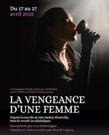La vengeance d’une femme, d’après la nouvelle de Jules Barbey d’Aurevilly tirée du recueil Les diaboliques (1874), est une confession sans absolution, ni de la part du client qui recueille les confidences de cette aristocrate devenue prostituée, ni de la part du public, invité à une cérémonie au parfum de décadentisme. Le péché de la chair n’est pas l’objet de cette pièce, mais l’acte d’amour dans lequel il y a, selon Charles Baudelaire, "une grande ressemblance avec la torture". En faisant le trottoir, l’héroïne travaille à faire perdre l’honneur à son ancien mari (un aristocrate espagnol). Quelles raisons l’obligent à cet épouvantable jeu ? Sanzia-Florinda-Concepcion étale aux yeux des spectateurs effarés son "ciel en creux". Le mot "diabolique" est-il employable pour cette fille des rues dont les turpitudes prouvent la nécessité d’une justice divine ? C’est toute la question de La vengeance d’une femme.