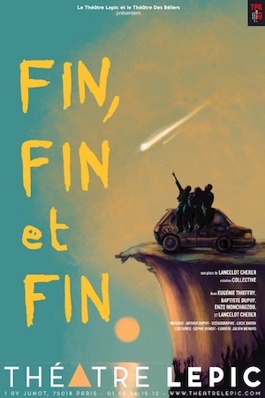 Demain matin, c’est le dernier lever de soleil. Le président a fait une annonce, le monde c’est fini. Qu’est-ce qu’on fait ? Est-ce qu’on panique ? Est-ce qu’on irait pas plutôt pique-niquer à la plage? Profiter des derniers rayons de soleil ! C’est ce que choisissent de faire Charlie, Bastien, et Guillaume, nos trois protagonistes. Pendant ce temps, une partie de la population ne se pose pas la même question. Les contrôleurs contrôlent et les flics fliquent. La société est si solidement ancrée dans les esprits que l'apocalypse elle-même ne suffit pas à les en faire sortir. C’est absurde. Ce sont ces deux histoires liées par un contexte apocalyptique que nous racontons avec humour et décalage dans Fin, fin et fin.