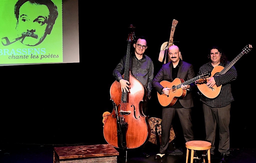 SPECTACLE MUSICAL de Georges Brassens, mis en scène de Philippe Nicaud, avec Nicolas Natkin, Stéphane Caroubi (contrebasse) et Mauro Talma (guitare).