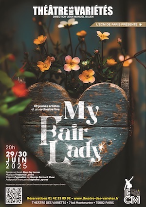 SPECTACLE MUSICAL de Lerner et Loewe, adaptation française Stéphane Laporte, mise en scène de Ned Grujic, direction vocale Véronique Fruchart, direction musicale Laurent Brack, chorégraphies: Amélie Foubert, Elodie Hec, Laure Balon, Flore Fruchart, Vivien Le Tarnec, Vivien Visentin, Elisa Maurice, Tania Vega, avec 48 jeunes artistes de l'ECM de Paris et un orchestre live. Avec entracte.