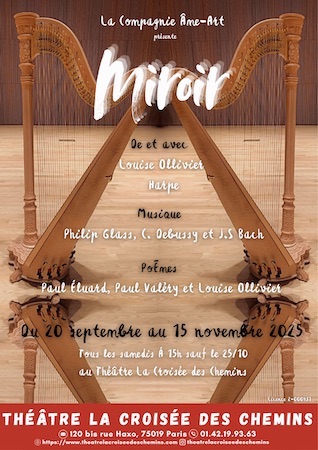 "Miroir" est un concert scénographié pour harpe seule, conçu comme une expérience sensorielle et méditative. À travers les œuvres de Philip Glass, Bach et Debussy, Louise Ollivier explore les notions de cycle, de reflet et de suspension. Le dispositif scénique, mêlant jeux de lumière et miroirs, crée un espace poétique et immersif, où le son et l’image se répondent. Ce solo invite à une écoute intime et introspective, et propose un temps suspendu entre musique, silence et lumière. Une forme hybride entre concert classique et installation visuelle, pensée pour des lieux propices à l’attention et à la proximité.