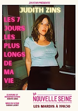 Avec son humour singulier, Judith Zins retrace Les 7 Jours Les Plus Longs De Sa Vie : la naissance de son enfant, où absolument rien ne s’est passé comme prévu… En passant de ses origines familiales à son goût pour la télé-réalité, de son rêve d’être rappeuse à sa peur de la catastrophe, Judith questionne avec poésie et autodérision son lien à la transmission, la maternité et l’amour. Ce seule en scène raconte une histoire universelle, telle une course effrénée pour la vie !