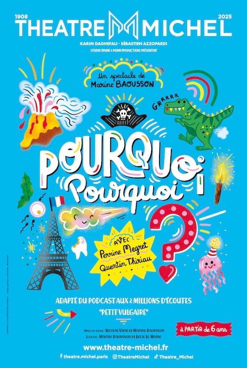Adapté de Petit Vulgaire, le podcast de vulgarisation aux 2 millions d'écoutes, Pourquoi Pourquoi, c'est LE spectacle qui répond à toutes les questions que vos enfants vous posent, alors qu'évidemment... vous n'avez pas la réponse. Dans ce spectacle interactif, les enfants choisissent les sujets : les volcans ou les dinosaures ? La grotte de Lascaux ou La Tour Eiffel ? Les caries ou comment on fait les bébés ?
