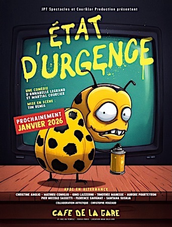 COMÉDIE d'Annabelle Legrand et Martial Courcier, mise en scène par Tim Remis, avec, en alternance, Christine Anglio ou Florence Savignat, Mathieu Coniglio ou Pier Niccolo Sassetti, Gino Lazzerini ou Timothée Manesse, Aurore Pourteyron ou Santana Susnja.