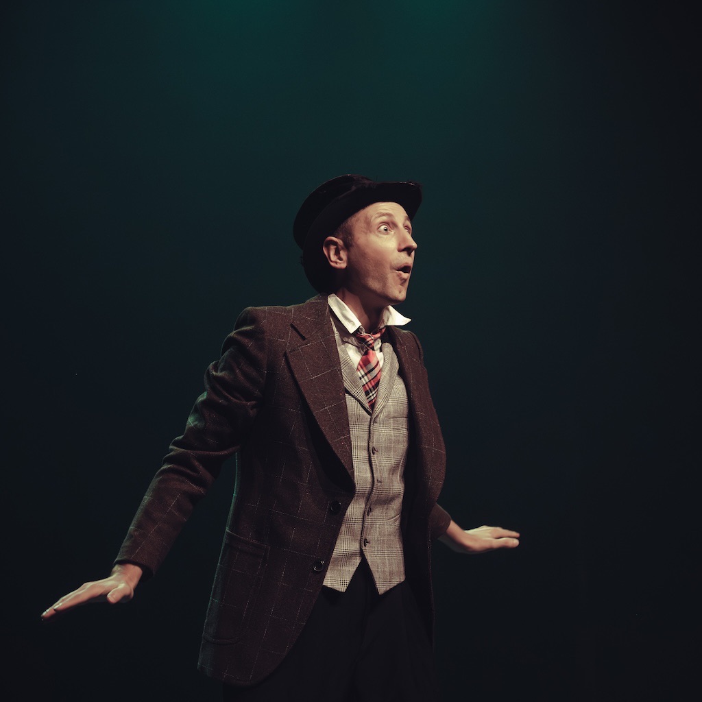 MIME / MARIONNETTES de Flavien Renaud, mis en scène par Ira Seidenstein, avec Flavien Renaud (comédien) et Antoine Morinière (musicien).