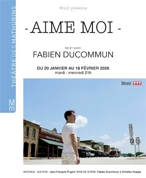 AIME MOI est le récit en mots, en musique et en chansons d’un road trip mystique et poétique, de la côte Est à l’océan Pacifique. Fabien Ducommun qui fut le « Soldat Rose » de Louis Chedid, à Paris et en tournée, revient sur scène accompagné du guitariste Jean-François Prigent et reprend les chansons mythiques des crooners des années cinquante. Suite à un revers de fortune, Fabien est embarqué presque malgré lui dans une traversée solitaire des Etats-Unis, au volant d’une vieille Chevrolet qu’il nomme Princesse. Ce trajet, vécu comme un mauvais concours de circonstances, prend peu à peu la tournure d’un voyage initiatique. A mesure que les kilomètres défilent, les souvenirs marquants qui ont jalonné sa vie refont surface. Aux commandes de sa monture d’acier, au hasard de rencontres qui rejouent en miroir les scènes fondatrices de sa vie, il n’a d’autre choix que de se confronter aux fantômes de son passé.