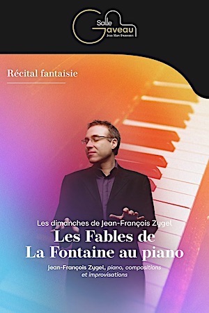 Jean-François Zygel déploie toute sa virtuosité en l’honneur de Jean de La Fontaine ! Le célèbre pianiste improvisateur met en musique les allégories animalières des Fables de La Fontaine dans des compositions instantanées, au gré de sa fantaisie et de son inspiration. L’économe fourmi face à la dispendieuse cigale, le corbeau vaniteux attrapé par la ruse du renard, la souplesse du roseau contre l’apparente robustesse du chêne, ou encore la plus sérieuse allégorie de l’injustice s’abattant sur un honnête âne... Ces histoires en apparence anodines nous parlent en réalité de nous, de la société, des grands et petits travers de nos contemporains. Une expérience musicale et poétique pour piquer l’imagination des spectateurs de tout âge grâce à la liberté et à la fantaisie d’un fabuleux fablier, pour le plus grand plaisir de créer la musique avec et pour le public.