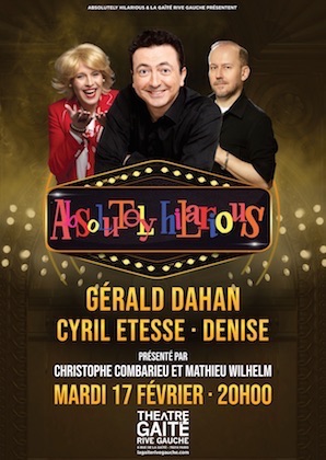 Pour cette nouvelle édition d'Absolutely Hilarious, Gérald Dahan, l'Imposteur Public N°1" s'apprête à dégainer ses salves d'imitations les plus croustillantes ! Un véritable show en perspective ! À travers une cinquantaine d'incarnations, plus saisissantes les unes que les autres, l'imitateur aux 500 canulars nous bluffe avec une multitude de performances vocales dont lui seul a le secret. Mais aussi avec Denise, la décadence et l'irrévérence incarnée ! Une tornade d'humour qui ne laisse de répit à personne... Et Cyril Etesse, à l'humour vif, au style explosif !
