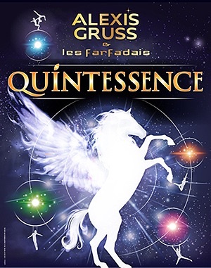 Afin de sauver Pégase, le cheval ailé réputé indomptable, Joseph fils de Bellérophon, doit accomplir une mission. En héros valeureux, il devra récupérer un fragment de l'essence de chaque élément: l'Air, la Terre, le Feu et l'Eau. Après le succès de "Pégase & Icare" découvrez ce nouveau spectacle équestre et aérien "Quintessence", création originale alliant le savoir-faire des écuyers de la famille Alexis Gruss et celui de la compagnie les Farfadais, comptant parmi les meilleurs acrobates aériens au monde.