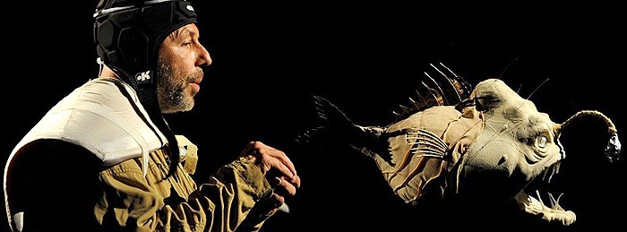 Entre théâtre noir, marionnettes et marionnettes hybrides, les monstres marins deviennent d'un réalisme confondant et semblent léviter.
