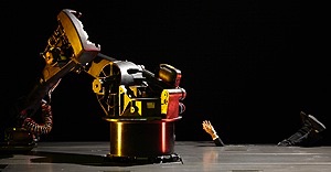Confrontant deux danseurs et acrobates pleins d'énergie aux ressources inépuisables d'un robot, Aurélien Bory dévoile un monde où les rapports de force ont changé. Ancien jongleur, le metteur en scène fait valser les idées jusqu'à ce qu'elles ne retombent jamais là où on les attend. Dans ce spectacle mouvementé et troublant, qu'on pourra enfin revoir à Paris, c'est l'idée même de modernité qui se trouve mise sens dessus dessous.