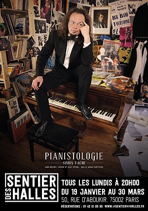 Le complexe est bien connu du monde du show-business: les musiciens rêvent de one-man show et les comiques regrettent de ne pas savoir jouer d'instrument. Mais ça, c'était avant. Avant "Pianistologie", la réjouissante psychanalyse de Simon Fache où le piano remplace le divan et où le public est invité à écouter aux portes. En gymnastique, on appelle cela le grand écart. Et de la souplesse, Simon Fache n'en manque pas. Comme le prouvent le générique de Mac Gyver et les sonates de Chopin que le musicien virtuose dégaine avec autant de déférence. Lorsque ce dernier se permet d'ailleurs de confondre Wolfgang Jackson avec Michael Mozart ou encore de créditer Blanche-Neige au générique de Neuf Semaines et demies, ça n'est pas par goût gratuit de la querelle, mais pour la simple et bonne raison qu'il peut se le permettre.