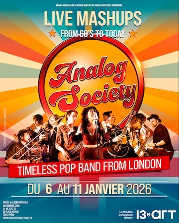Et si deux tubes légendaires ne faisaient plus qu’un ?Imaginez Bruno Mars fusionnant avec Queen, Nirvana dansant sur Daft Punk, ou Harry Styles revisitant Arctic Monkeys… Bienvenue dans l’univers d’Analog Society ! Révélé sur TikTok et Instagram avec plus de 7 millions de vues, ce collectif londonien réinvente l’art du mashup live. À chaque morceau, deux hits emblématiques se rencontrent pour un choc des générations aussi étonnant que électrisant. Sur scène, Ramona Blue et Pablo Mirmir, entourés de huit musiciens , livrent un show explosif mêlant groove, rock et électro, traversant les décennies, des années 60 à aujourd’hui.