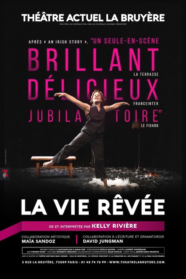 Après le succès d’An Irish Story, Kelly Rivière revient avec « La Vie Rêvée », un seule-en-scène où elle incarne Kelly Ruisseau, son alter‑ego, et une galerie de personnages hauts en couleur. Il y a la vie dont on rêve... Et celle que l’on mène. À 45 ans, c’est l’heure du bilan : Kelly Ruisseau n’est ni la danseuse étoile qu’elle rêvait de devenir, ni Liza Minelli. Intermittente du spectacle, elle se laisse porter par les projets, remettant son désir entre les mains des autres, et se confronte au réel : parfois joyeux, souvent dur, toujours inattendu. Le bilan est donc mitigé, mais certains rêves s’accrochent… D’où nous vient notre persévérance ? Dans un seule-en-scène tragicomique, elle remonte à la source de son désir et redonne vie aux gens qu’elle a croisés et aimés sur sa route.