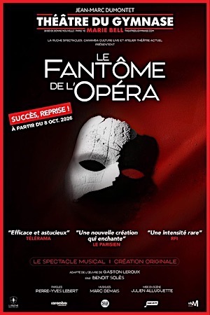 Le Fantôme de l’Opéra arrive pour la première fois en France dans une création originale. Inspiré de l’œuvre iconique de Gaston Leroux, cette toute nouvelle adaptation prend la forme d’une comédie musicale moderne et envoûtante. Découvrez des chansons originales, un regard neuf, une écriture captivante et une mise en scène inédite et éblouissante. Un opéra hanté, un fantôme masqué, une cantatrice ingénue, un triangle amoureux... Entre mystère, rires, larmes et suspense, venez découvrir cette comédie musicale aux chansons enivrantes. Une relecture audacieuse du Fantôme de l’Opéra, dans un écrin fabuleux.